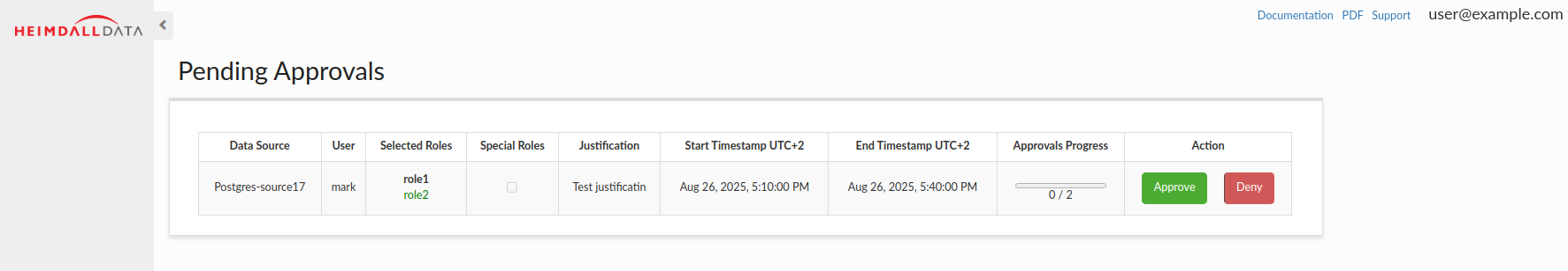 Once the above requirements are met, after requesting a session for the corresponding role, emails will be sent to the designated recipients. These emails include a link that contains a token. When accessed, the link allows approvers to approve or deny the session.